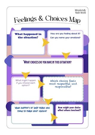 Lola’s festival maze is a visual tool that guides students through moments of emotional overwhelm or uncertainty. As they journey though the maze, they encounter turning points where they can pause, breathe and choose their next step with intention.